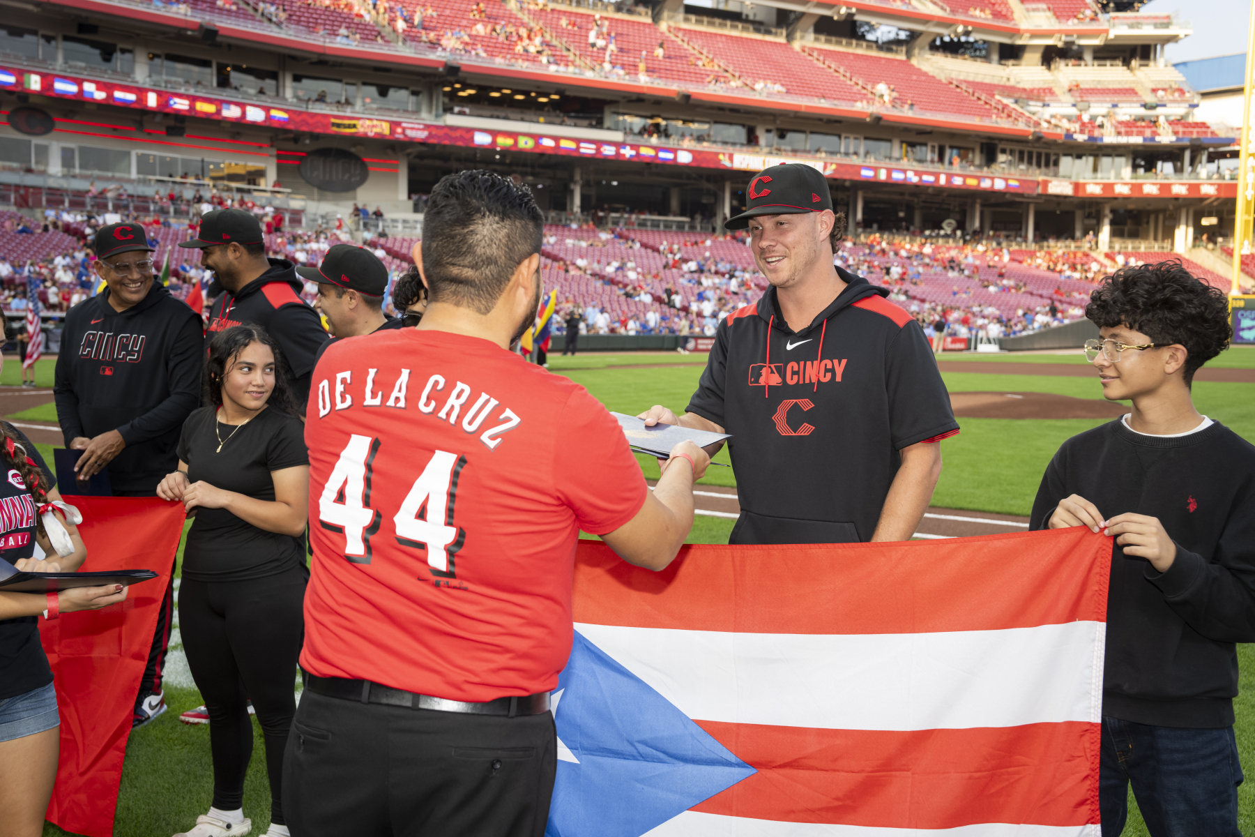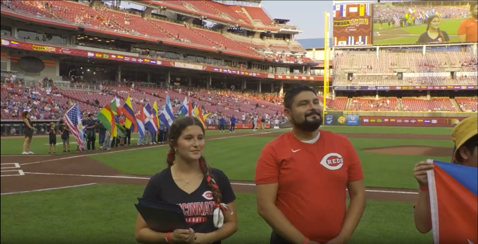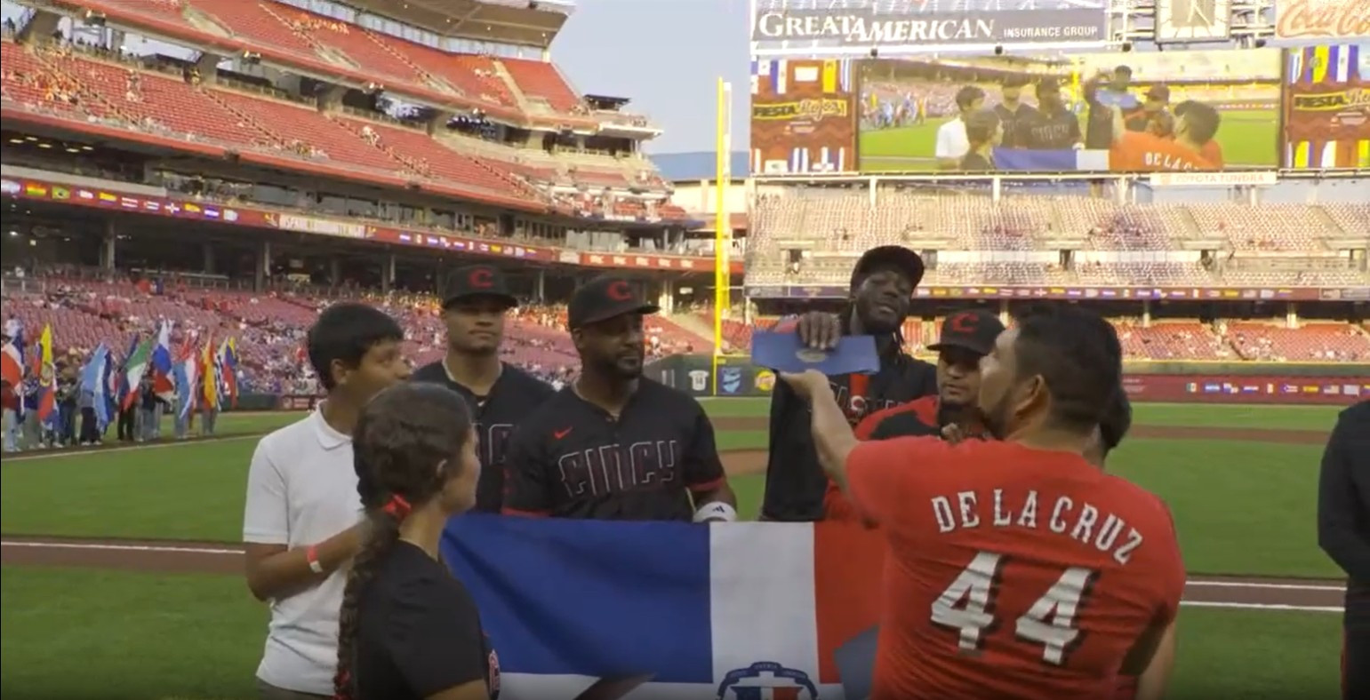 2025 Fiesta Rojos The Reds celebrated Hispanic Heritage Month with their annual Hispanic Community Night, “Fiesta Rojos,” featuring activities in the community and ceremonies at Great American Ball Park. |